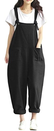 [ネストカニーナ] ゆるかわ オーバーオール レディース オールインワン ゆったり サロペット マタニティ 大きいサイズ (M ブラック)