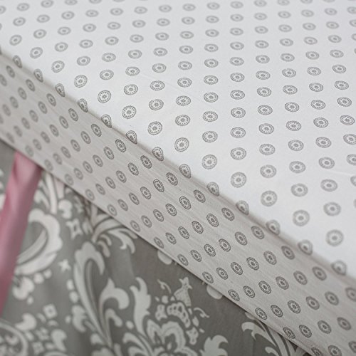 We are loving the combination of pink and gray colors. Our Stella Gray set pairs our Wisteria in Slate fabric with pink accents to create a chic and sophisticated look. The sheet is of Sunburst in Slate fabric, and the 17' tailored skirt is made from Wisteria in Slate with Cotton Candy pleats. The three piece includes a bumper, crib sheet and skirt.