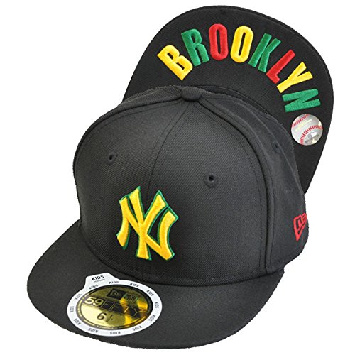 【NEW ERA 国内正規代理店】NEW ERA ニューエラ キッズ KIDS 59FIFTY undervisor ニューヨーク・ヤンキース ブラック × イエロー BROOKLYNラスタカラー [11229959]|6 3/4(53.9cm) ブラック
