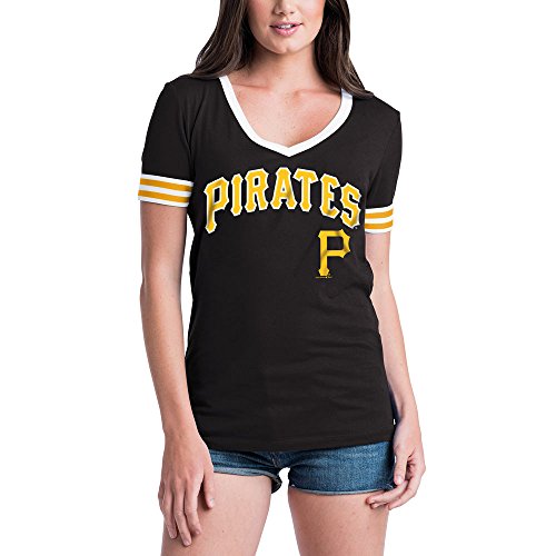 Pittsburgh PiratesレディースS / S Vネックベビージャージー XS ブラック