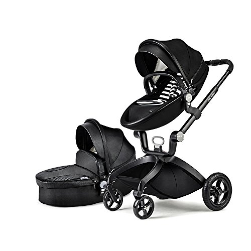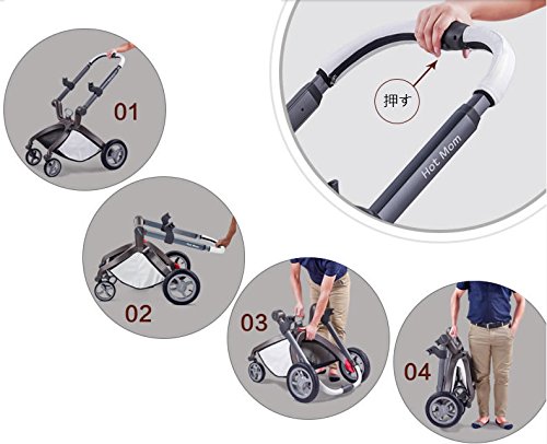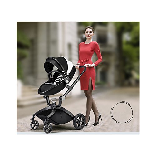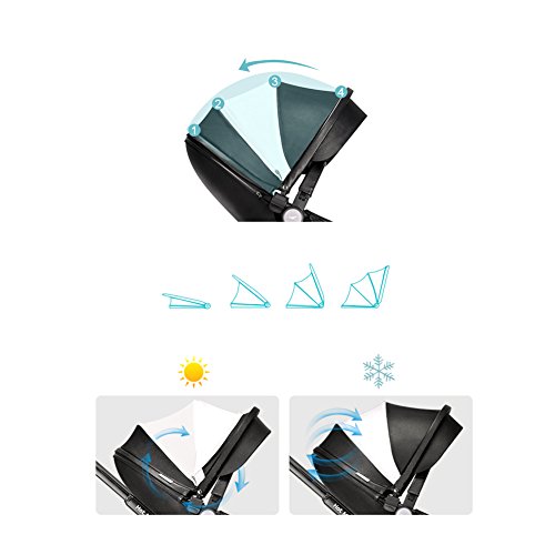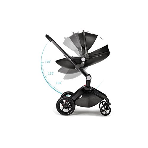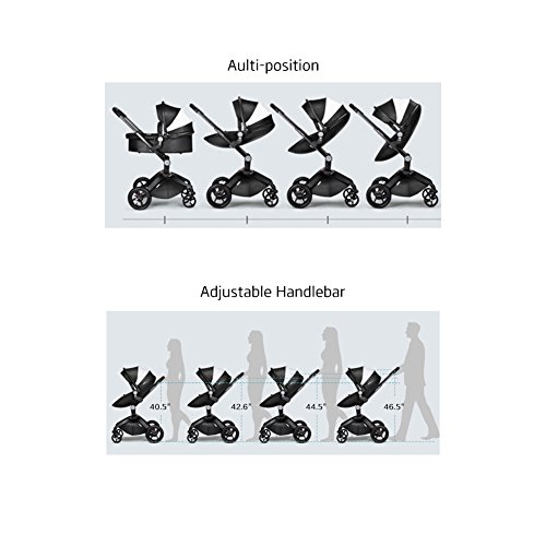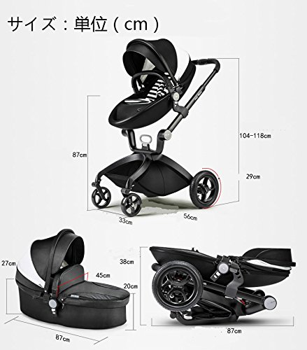 (Newox) ベビーカー 両対面ベビーカー ハイシートベビーカー 折りたたみ式 エッグデザイン PU材質 アルミフレーム ベビーベッド付き 後輪ブレーキ付き 買い物かご付き ハンドル調整可 高級感 (ブラック)