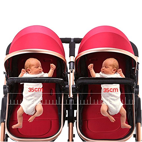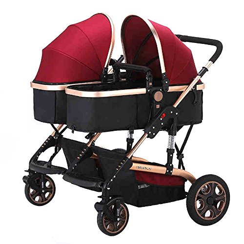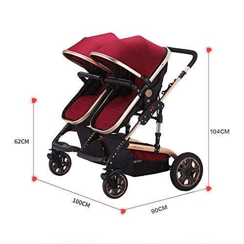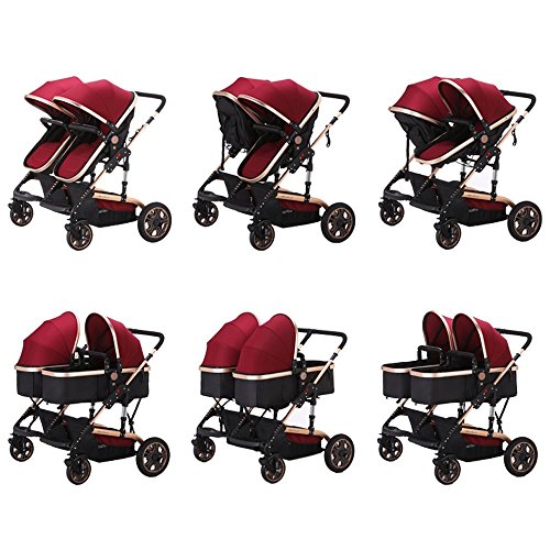(Newox) ベビーカー 二人乗りベビーカー 双子ベビーカー ハイシートベビーカー 両対面ベビーカー 折り畳み 通気性 買い物かご付き レインカバー付き (レッド)