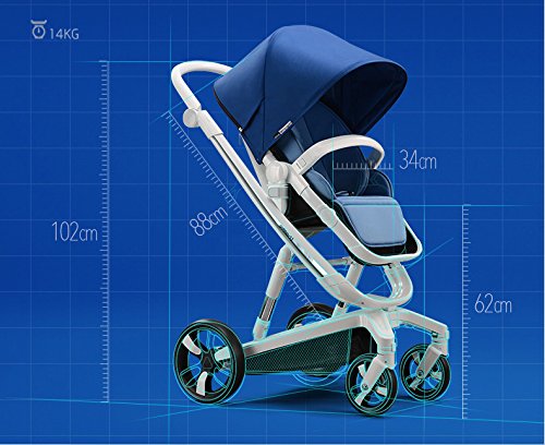 (Newox) ベビーカー ハイシートベビーカー 両対面ベビーカー 自動ブレーキシステム機能付き 折りたたみ式 アルミフレーム 後輪ブレーキ付き 買い物かご付き ハンドル調整可 高級 高性能 (ブルー)