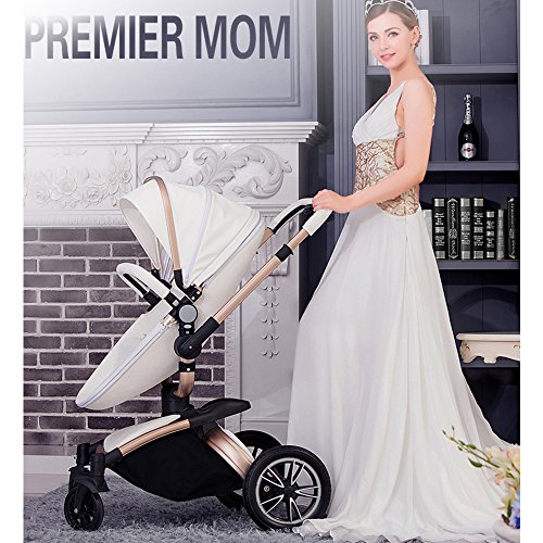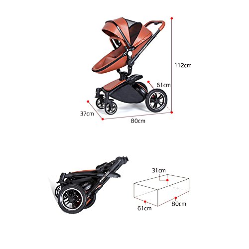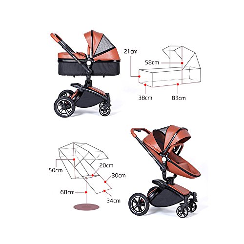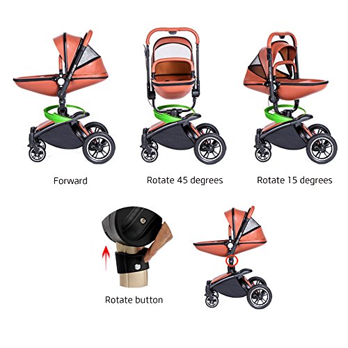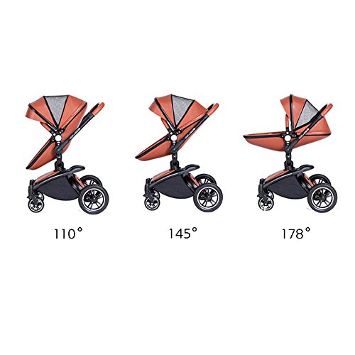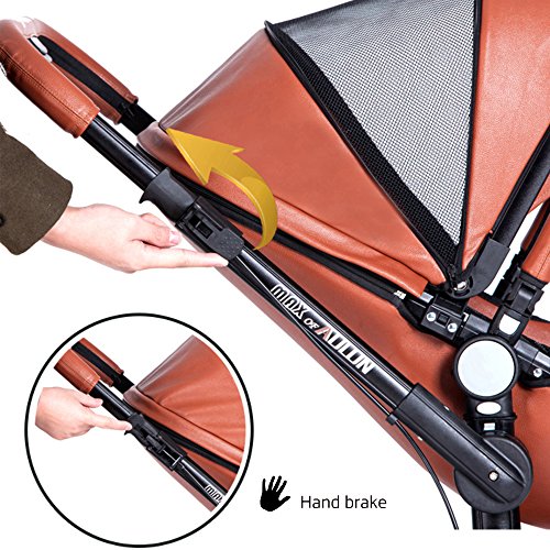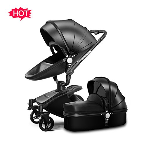 (Newox) ベビーカー 両対面ベビーカー ハイシートベビーカー 座椅子360度回転可能 対面押す可能 エッグデザイン座椅子 上質PU素材 飛行機用アルミニウム合金フレーム 独立揺りかご付き 手ブレーキ機能搭載 買い物かご付き ハンドル(前後、長さ)調整可 ゴム製空気入れなしキャスター (ブラック)