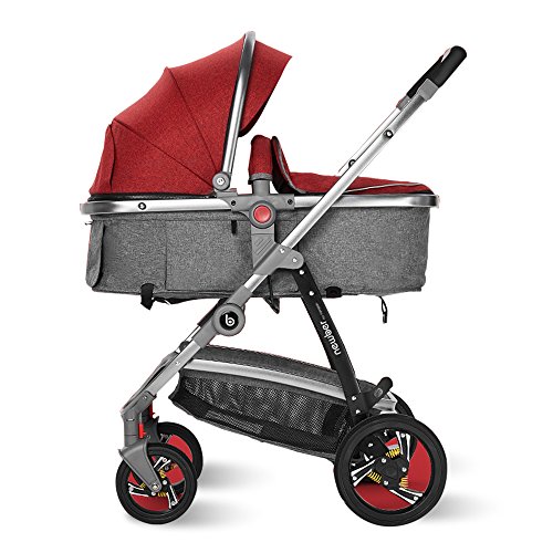 (Newox) ベビーカー 両対面ベビーカー ハイシートベビーカー 折りたたみ PU素材 大型物置付き 冬対策防寒カバー付き (Red)