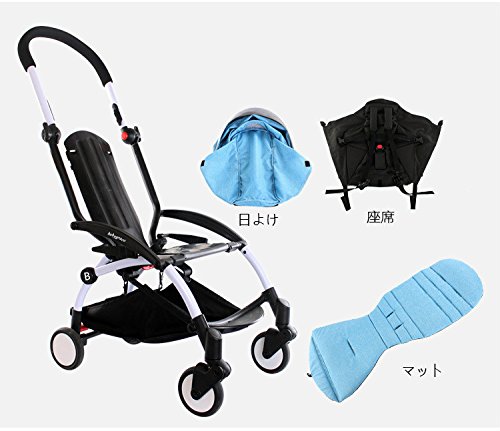 (Newox) ベビーカー 4輪ベビーカー 機内持ち込み可 軽量 折りたたみ式 通気性良い レインカバー付き 収納袋付き 後輪ブレーキ付き (ブルー)