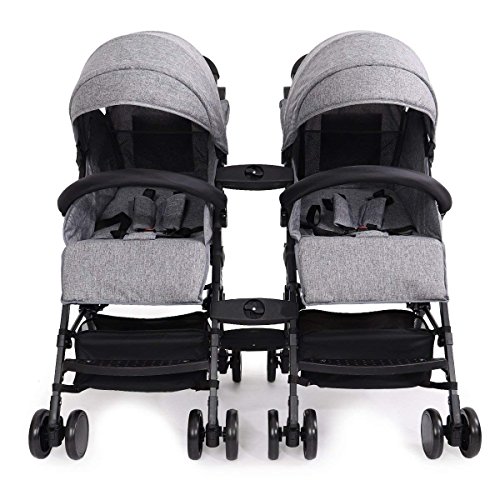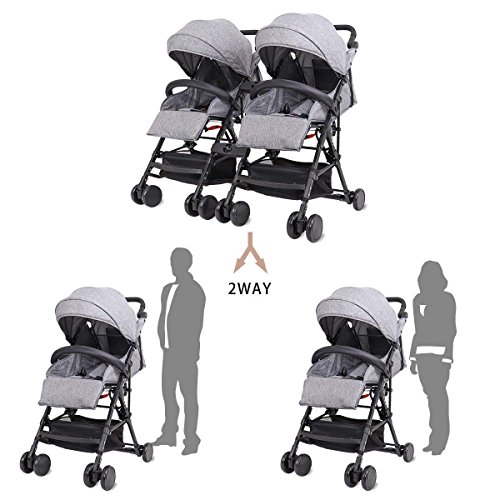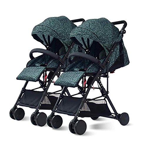 (Newox) ベビーカー 二人乗りベビーカー 双子ベビーカー リクライニング機能 独立使用可能 物置カゴ付き (Green)