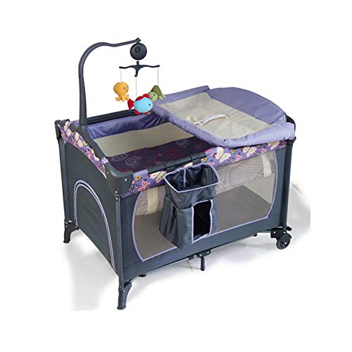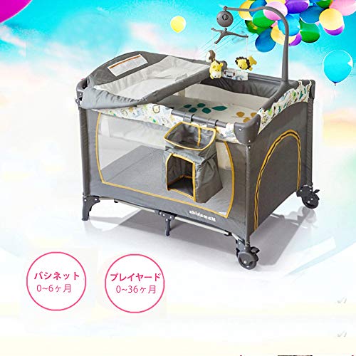 (Newox) ベビーベッド プレイヤード ベビーサークル 折りたたみ おむつ替え付き キャリーバッグ付 移動ラクラクキャスター付 上段バシネット付 (ネイビー)