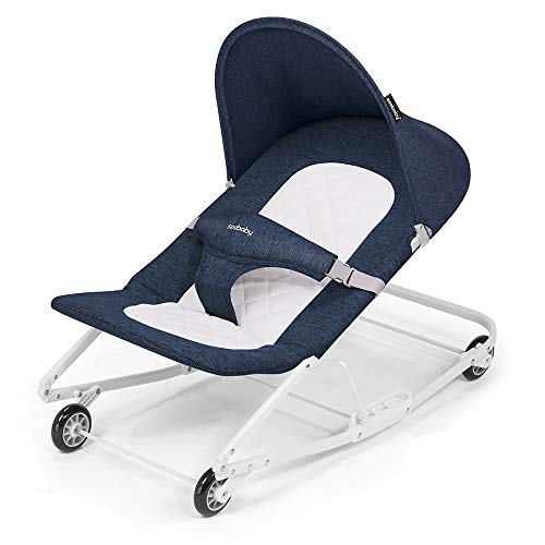 (Newox) バウンサー ロッキングチェア 揺りかご ベビーベッド ベビーチェア 簡易ベビーカー (ネイビー)