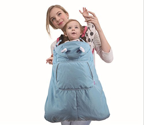 (Newox) 防寒カバー 抱っこひも ベビーキャリア 裏ボア 極暖 ベビー用品 ベビーカー ベビーケープ ベビーカー用防寒カバー 新生児用品 子供お出かけ用品 出産祝い 小物入れポケット付き (ブルー)