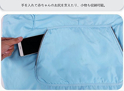 - ケープの前側には大きなポケットがついています。抱っこ紐装着時に手を入れて赤ちゃんのお尻を支えたり、小物も収納可能。