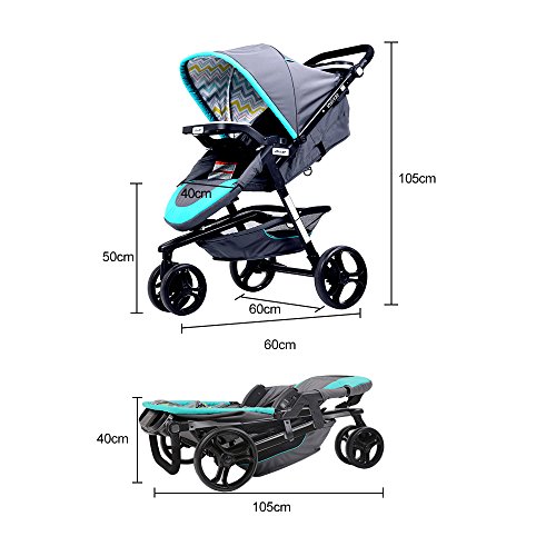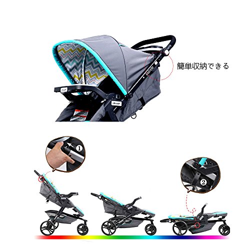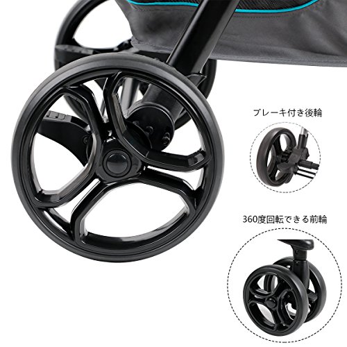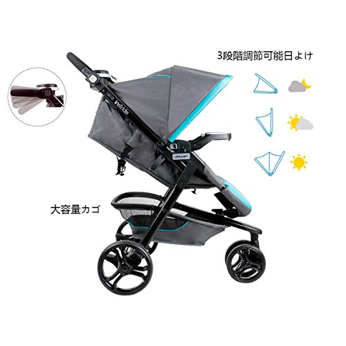 (Newox) ベビーカー 3輪ハイシートベビーカー 折り畳み簡単 自立する 【前置き食事プレート ドリンク2本入りハンドルプレート フタ付き収納ケース 大容量カゴ】 3~48ヶ月 (ブルー)