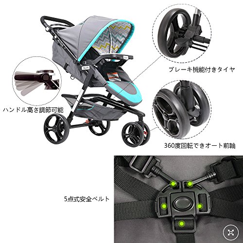 - [素材]:フレーム/アルミニウム合金、幌/オックスフォ一ド、タイヤ/EVA、パーツ/ポリプロピレン
