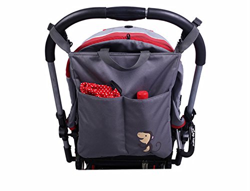 (Newox) ベビーカー用バッグ マザーズバッグ 多機能小物入れ ドリンクホルダー 大容量 可愛い (グレー×サル)