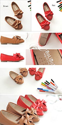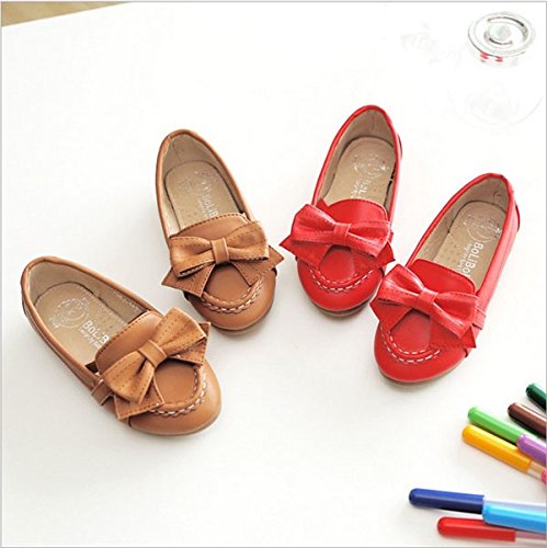(韓国スタイル子供靴) 最子供靴女の子用フォーマルシューズキッズシンプルスタイル靴可愛いリボンデザイン入りやすいタイプ全2色 brown,195