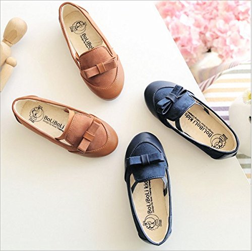 (韓国スタイル子供靴) キッズフォーマルシューズ 子供シューズ 女の子用子供靴入りやすいタイプ可愛いリボンデザイン全2色 17,brown