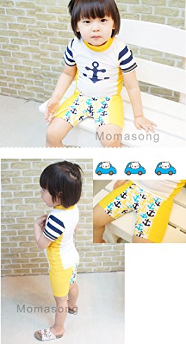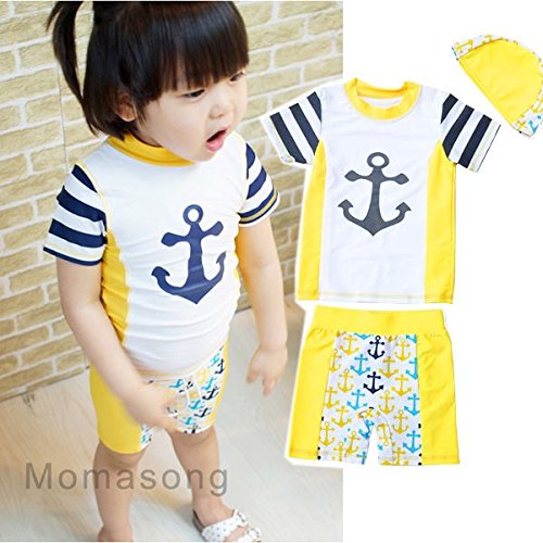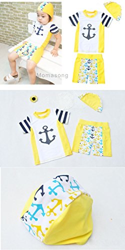 【 韓国スタイル子供服】 キッズ水着アンカープリントボーダー柄 男の子★子供ビキニSandy beachビキニ三点セット Yellow,130cm