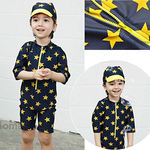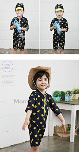 【 韓国スタイル子供服】 キッズ水着星柄 男の子★子供ビキニSandy beachビキニ三点セット Navy,100cm