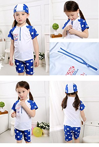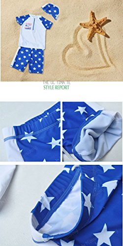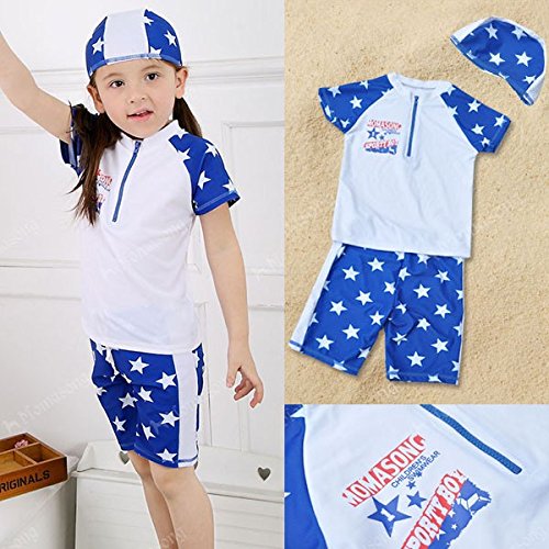 【 韓国スタイル子供服】 キッズ水着星柄 男の子男女通用★子供ビキニSandy beachビキニ三点セット Navy,130cm