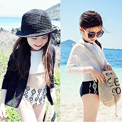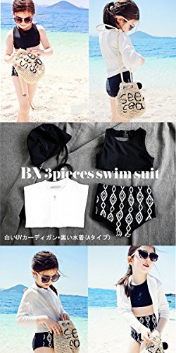 【 韓国スタイル子供服】 キッズ水着 女の子★子供ビキニフリル 可愛いSandy beachビキニ 四点セットUVカーディガン 全2色 White,L