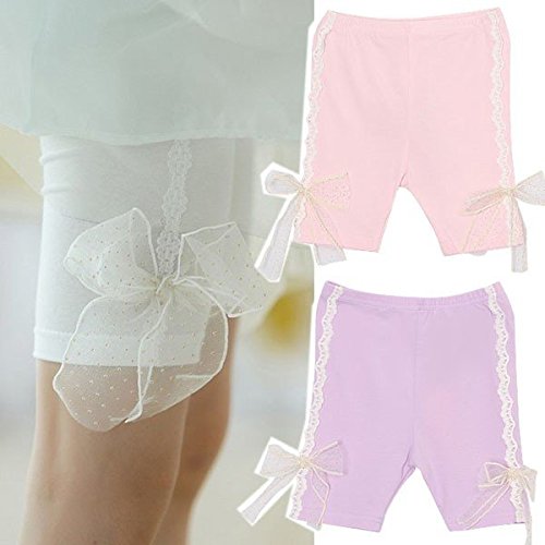 【韓国スタイル子供服】夏新作 キッズ レギンス 女の子 レースリボンハーフレギンス ★タイツ・スパッツ / 全3色選 100/110/120/130/140 Pink,130