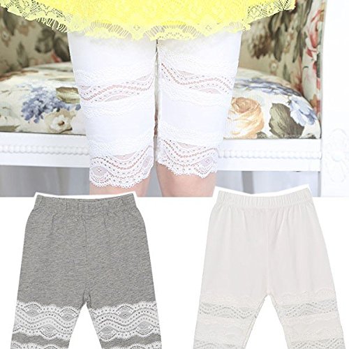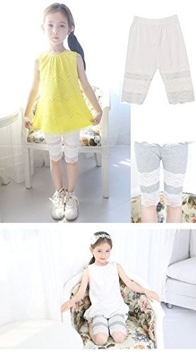 【韓国スタイル子供服】夏新作 キッズ レギンス 女の子 レースハーフレギンス ★タイツ・スパッツ / 全3色選 100/110/120/130/140 White,140
