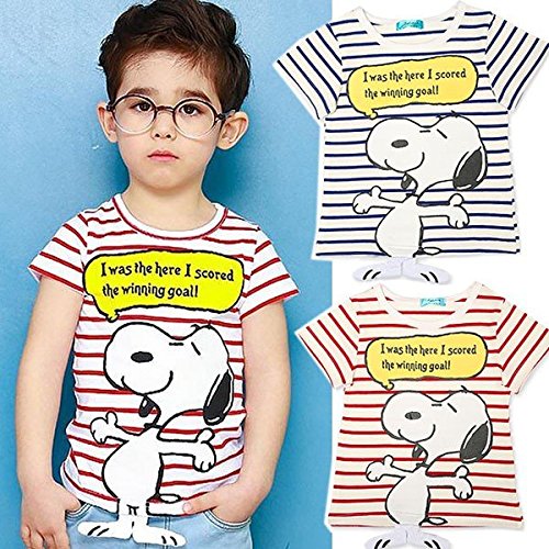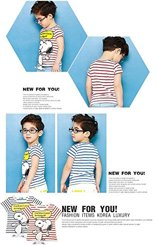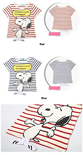 【 韓国スタイル子供服】 夏新作Tシャツ キッズ /半袖 男 の子/可愛い SNOOPYプリントボーダー柄 全2色100/110/120/130/140 Red,110cm