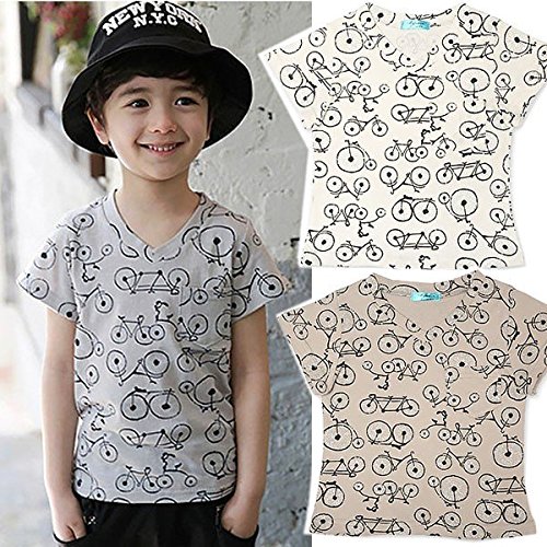 【 韓国スタイル子供服】 夏新作Tシャツ キッズ /半袖 男 の子/可愛い 自転車 プリント全2色100/110/120/130/140 Gray,140cm