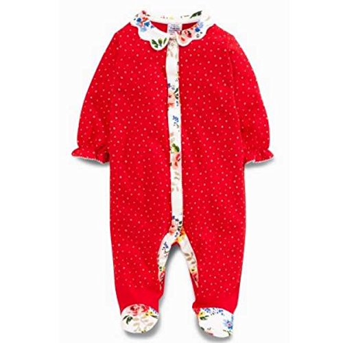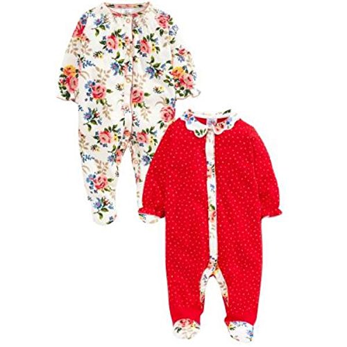 Next ネクスト ベビー ロンパース カバーオール 足つき 2枚組 足付カバーオール 綿 赤 花柄 (3か月~1.5歳 60 70 80 85) ベビー服 【出産祝い】(3-6か月 ワンカラー)