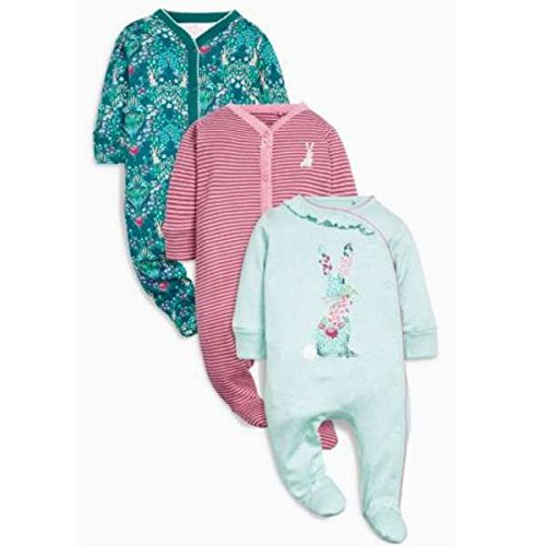 NEXT ネクスト ベビー ロンパース 足つき 恐竜 ウサギ カバーオール 3枚組 肌着 綿 60 70 80 90 (6-9か月 恐竜)