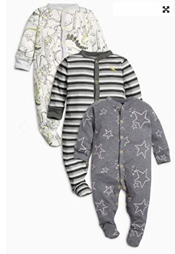 NEXT ネクスト ベビー 足つき ロンパース 恐竜 モノトーン 青 カバーオール 3枚組 肌着 ロンパース 綿 男の子 60 70 80 90(9-12m (9-12ヵ月) グレー(恐竜)) (9-12m, モノトーン) [並行輸入品]