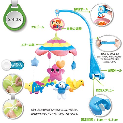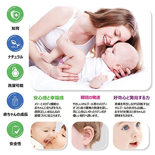 - オルゴールの柔らかい音色に合わせて、ゆっくり回るメリー(20曲)が赤ちゃんを眠りへと誘う。