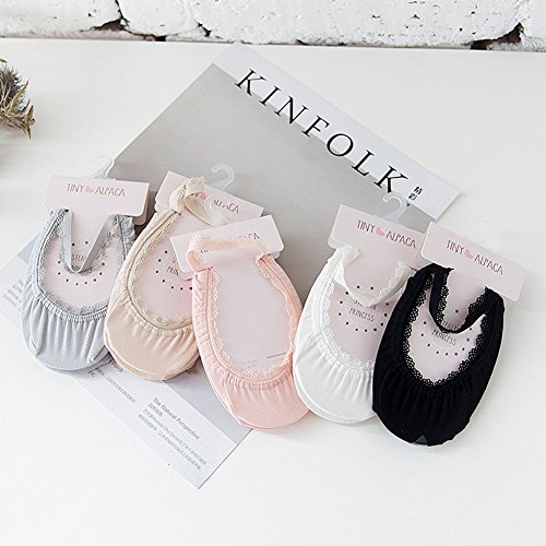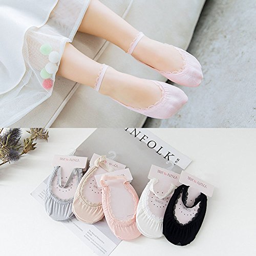 NiBao 児童用純綿靴下 レース ラッフルトリム アンクルストッキング / フリル ショート ストッキング5足 超短ステルスソックセット 女の子 床靴下 春夏新型 (L5-8歳)