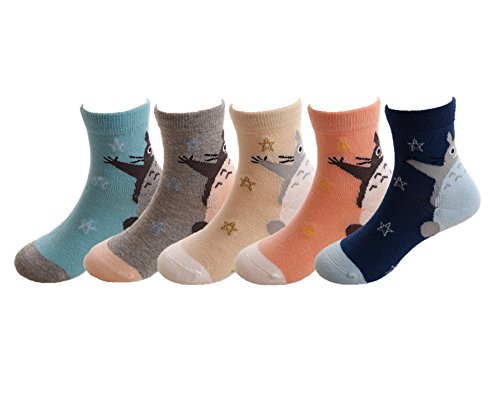 NiBao 中性児童純綿の漫画中筒靴下 スニーカーソックス 5足 男の子 女の子 靴下 春秋冬新型 (9-12)