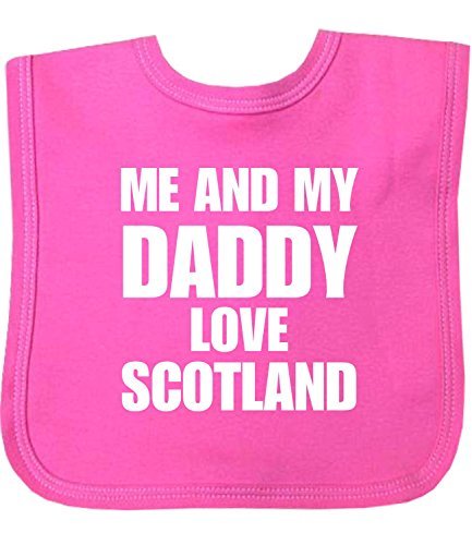 Velcro bib made from 100% cotton. Machine Washable;Main body is Pink with white lettering;Motif reads: 'Me and My Dad Love Scotland';Choose your size first, then a choice of 9 colours!;Quality item manufactured in the UK