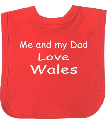 Velcro bib made from 100% cotton. Machine Washable;Main body is Red with white lettering;Motif reads: 'Me and My Dad Love Wales';Choose your size first, then a choice of 9 colours!;Quality item manufactured in the UK