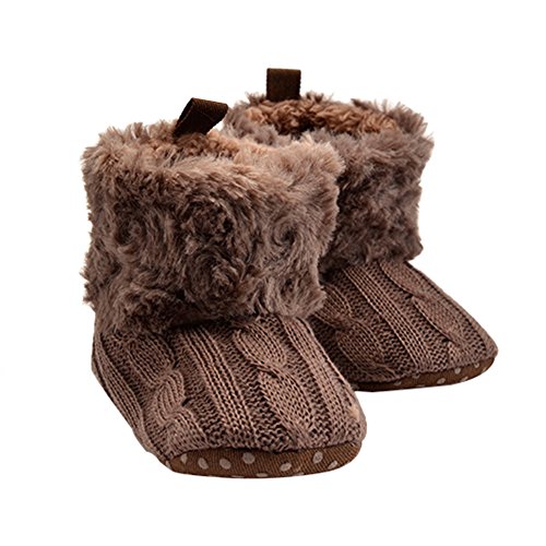 Nice Days(ナイス ディズ) ベビーシューズ 秋冬防寒ニットブーツ 室内 プレゼント 出産お祝い (12, ブラウン)