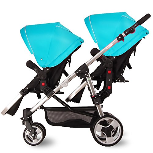 Nice Days(ナイス ディズ) 2人乗り ベビーカー 縦型 新生児から使える ソフト 安全 防水 紫外線防止 バギー (シルバー+ブルー)