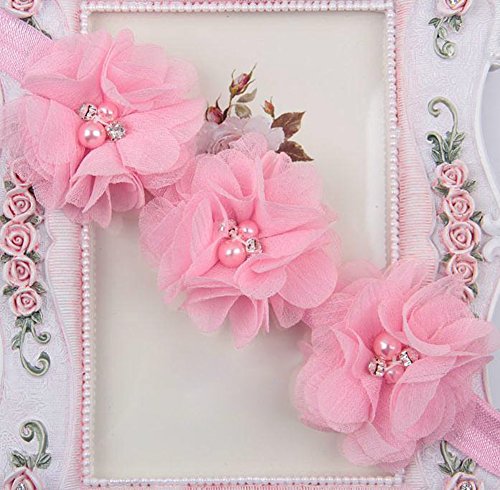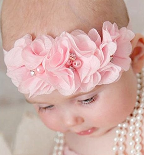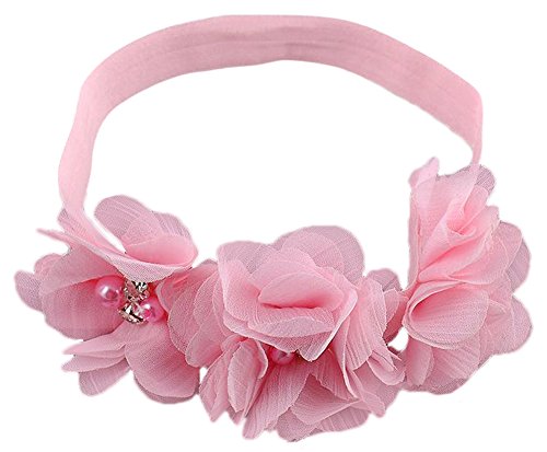Nice Days(ナイス ディズ) ベビーヘアバンド バラ シフォン パール付 (ピンク)