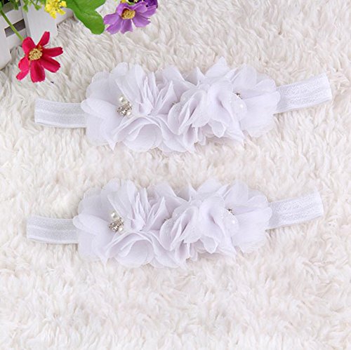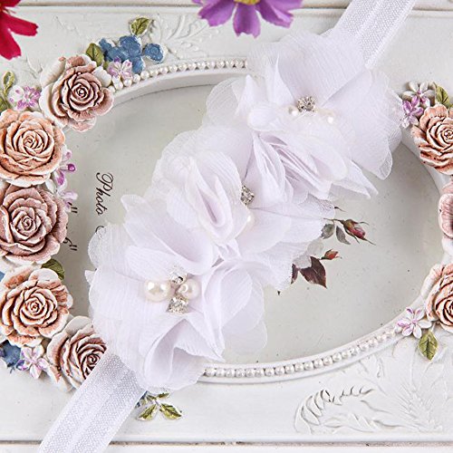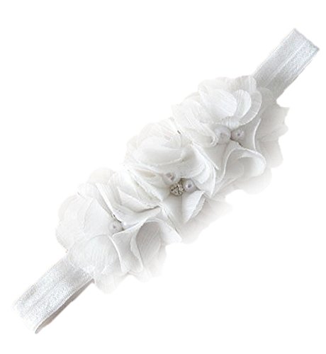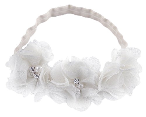 Nice Days(ナイス ディズ) ベビーヘアバンド バラ シフォン パール付 (白)
