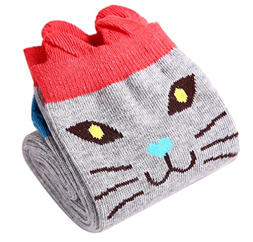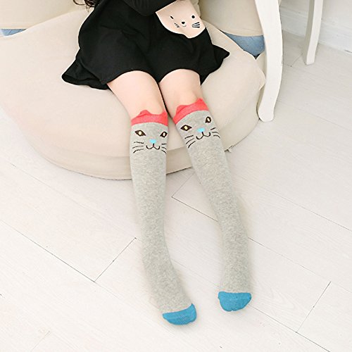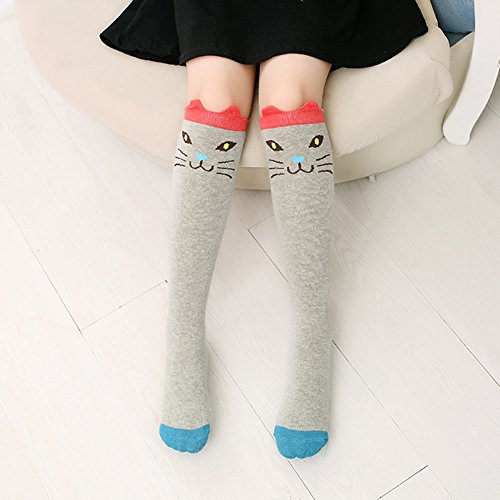 Nice Days(ナイス ディズ) 女の子ニーハイソックス 可愛い猫ちゃん 3Dアニマル靴下 ソックス (グレー)