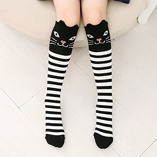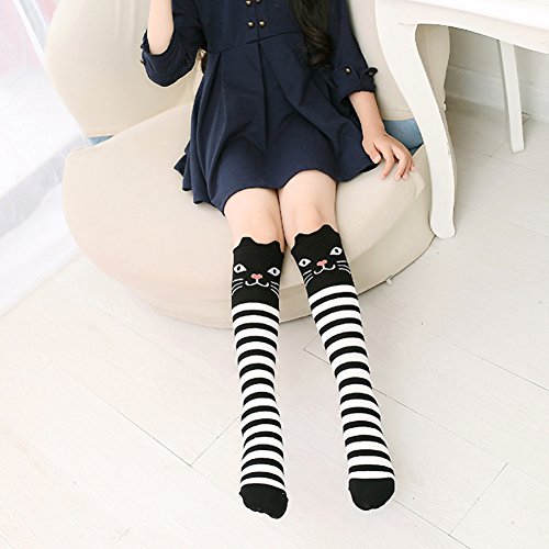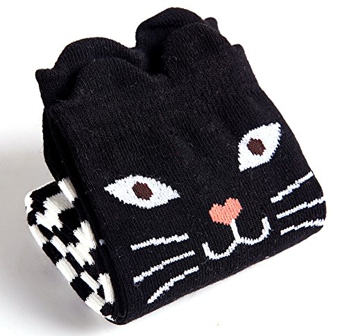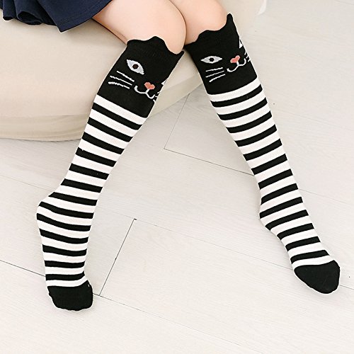 Nice Days(ナイス ディズ) 女の子ニーハイソックス 可愛い猫ちゃん 3Dアニマル靴下 ソックス (ブラック+ホワイト)