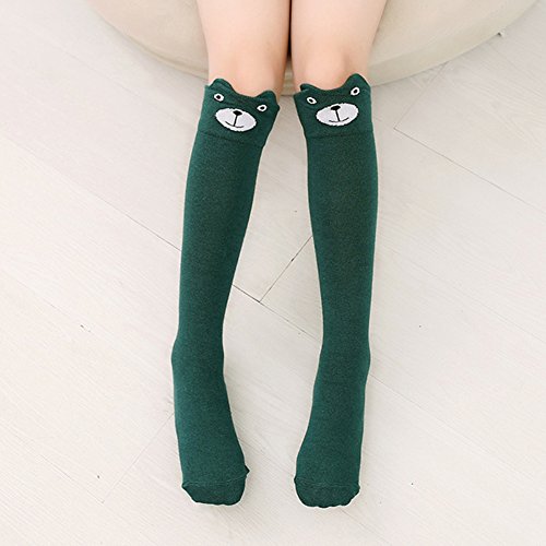 Nice Days(ナイス ディズ) 女の子ニーハイソックス 可愛いクマちゃん 3Dアニマル靴下 ソックス (グリーンクマ)