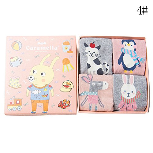 Nice Days(ナイス ディズ) 【4足セット】秋冬 ベビー 靴下 可愛い 動物柄 女の子 男の子 ふわふわ 綿製 暖かい 保温 子供のプレゼント (1-3歳, 4#)