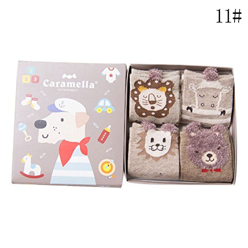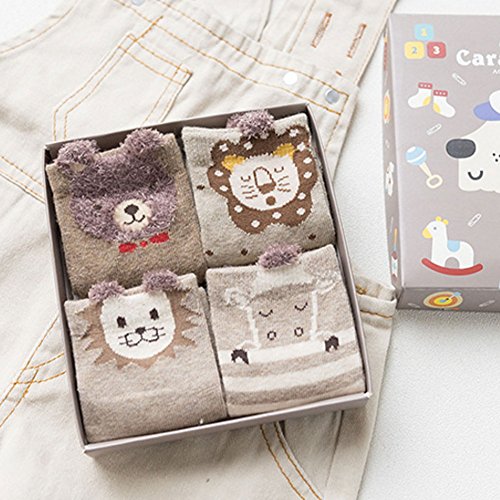 Nice Days(ナイス ディズ) 【4足セット】秋冬 ベビー 靴下 可愛い 動物柄 女の子 男の子 ふわふわ 綿製 暖かい 保温 子供のプレゼント (3-5歳, 11#)