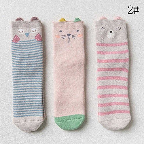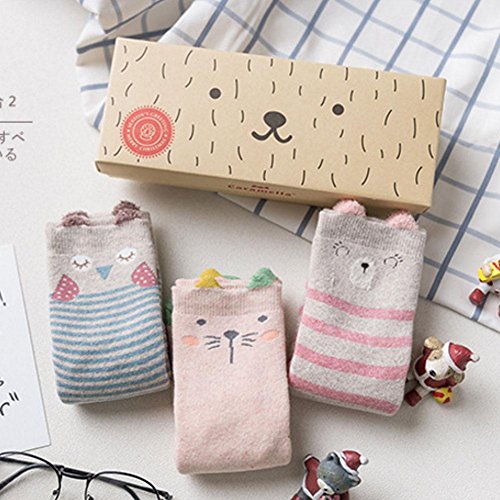 Nice Days(ナイス ディズ) 【3足セット】秋冬 ベビー 靴下 キッズ ソックス 女の子 男の子 可愛い 動物柄 ふわふわ 暖かい 保温 出産祝い 子供の日 ギフト (3-5歳, 2#)