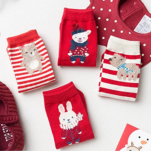 Nice Days(ナイス ディズ) 【4足セット】秋冬 ベビー 靴下 女の子 男の子 ふわふわ 暖かい 保温 可愛い クリスマスシリーズ クリスマス プレゼント (1-3歳, 6#)