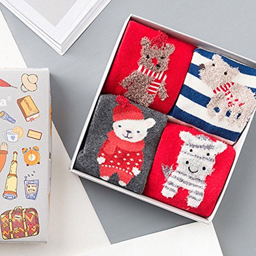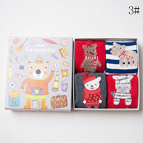 Nice Days(ナイス ディズ) 【4足セット】秋冬 ベビー 靴下 女の子 男の子 ふわふわ 暖かい 保温 可愛い クリスマスシリーズ クリスマス プレゼント (3-5歳, 3#)