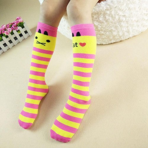 Nice Days(ナイス ディズ) 靴下 女の子 キッズソックス オーバーニーソックス 子供用ハイニーソックス 可愛い 猫柄 綿製 42cm (5#)