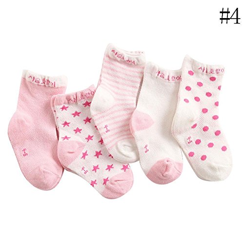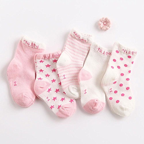 Nice Days(ナイス ディズ) 【5足セット】春夏 可愛い 子供 靴下 カラフル ソックス 男の子 女の子 クルー丈 通気性 (ピンク, 8-10㎝)